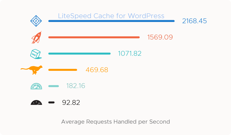 A imagem abaixo compara a velocidade do LiteSpeed Cache com outros plugins para o WordPress que possuem a mesma função: