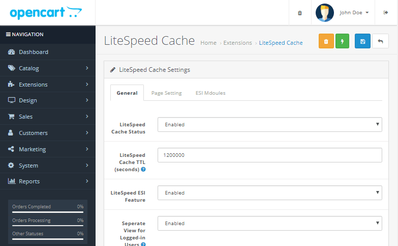 LiteSpeed Cache para OpenCart
